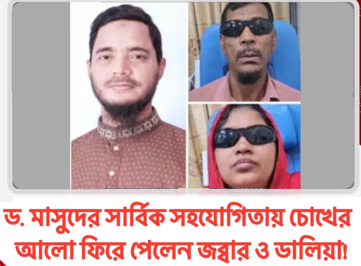 জামায়াত নেতা: ড.মাসুদের সার্বিক সহযোগিতায় চোখের আলো ফিরে পেলেন জব্বার ও ডালিয়া